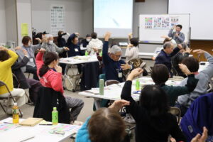 今回は「岩倉市シルバーリハビリ指導士会」「岩倉市要約筆記サークルさくら」「岩倉ボランティアサークル」にご協力いただき、活動を報告してもらう他、実際にシルリハ体操や要約筆記、レクリエーションなどを参加者に体験してもらうこともできました。